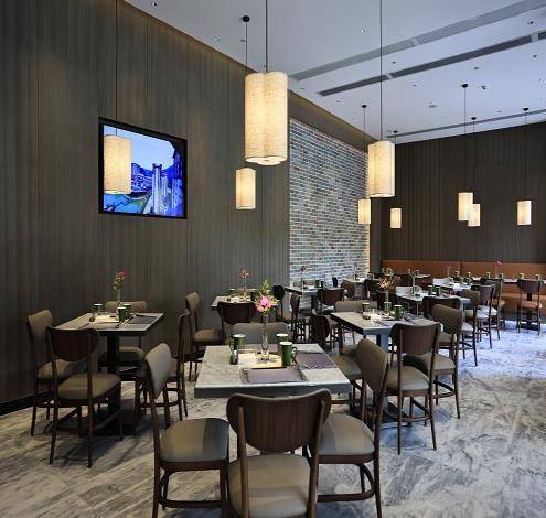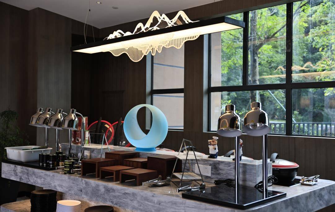 餐厅毗邻美泉谷泉心湖畔,落地式观景玻璃大窗,