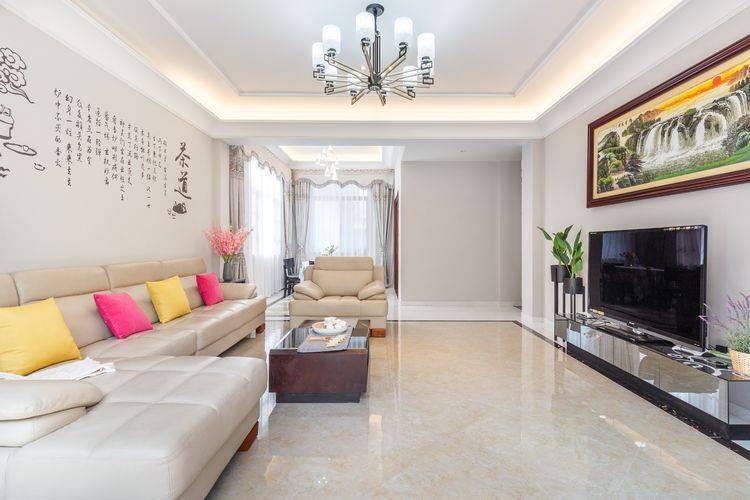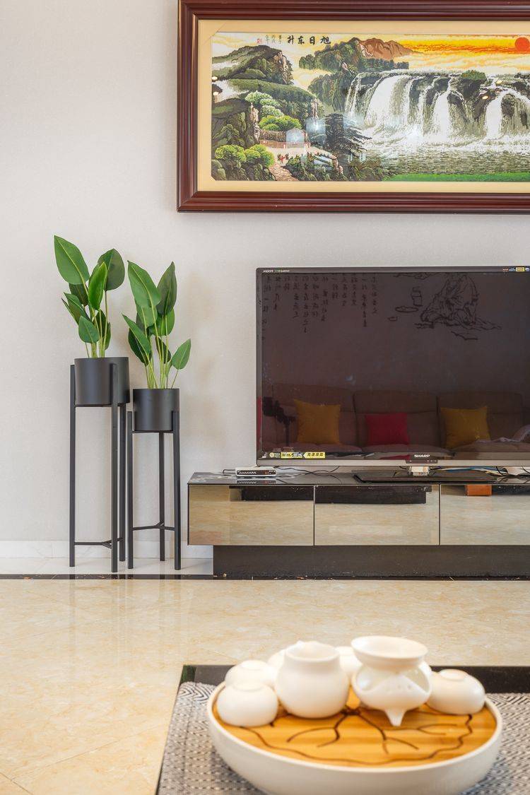 客厅中电视、沙发、茶几、餐桌一应俱全
