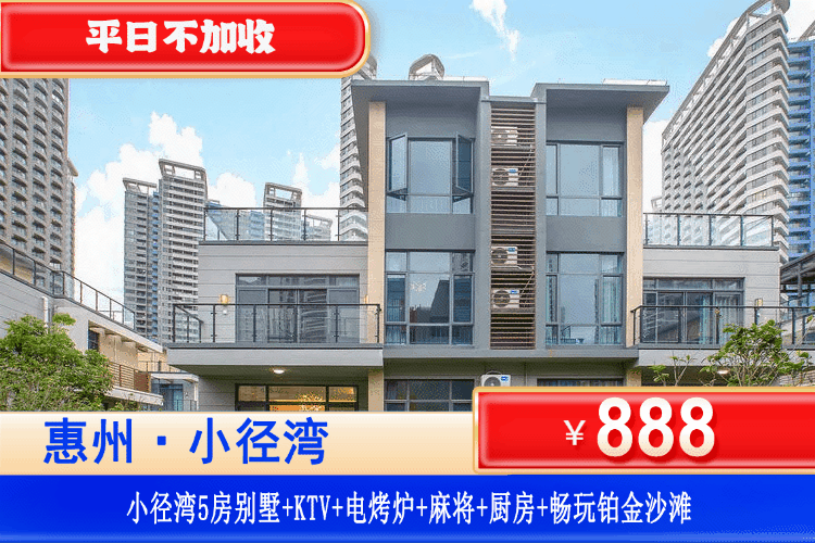 【惠州·小径湾·临海别墅】暖春特惠!春节可用!平日不加收!¥888秒杀小径湾临海网红5房别墅+电烧烤+KTV+麻将+厨房厨具,畅玩铂金沙滩!享水质“醉”好的一片海,打卡网红栈道!可升级6房别墅!
