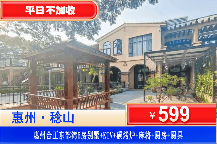【惠州·合正东部湾·海边别墅】特价专场!平日不加收!春节可用!¥599元秒杀东部湾5房别墅+KTV+碳烤炉+自动麻将+儿童戏水池+厨房厨具+铂金沙滩畅玩,海边轰趴聚会首选,步行5分钟到沙滩!