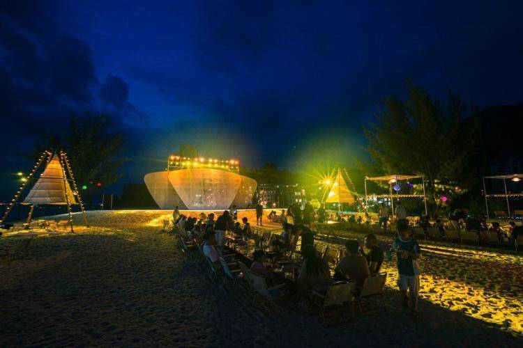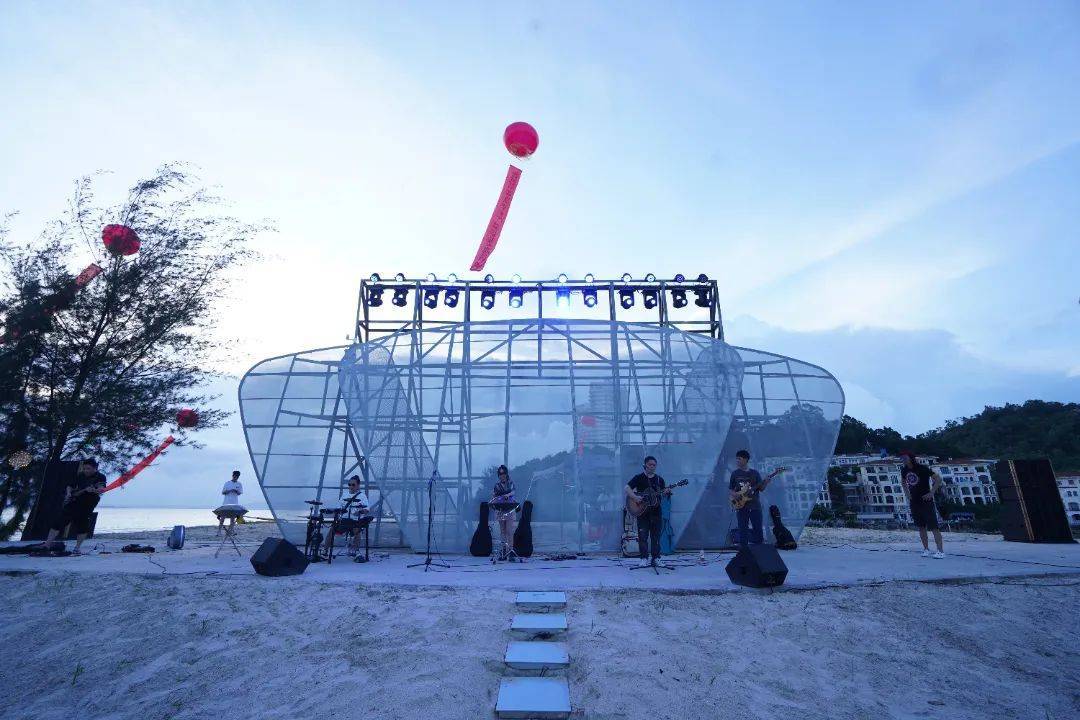 大型沙滩舞台,专业设备,为喜爱音乐的你,打开一片新天地,无论你是爱好欣赏音乐,抑或是爱好歌唱, 双鱼岛音乐营地皆可满足你的要求。