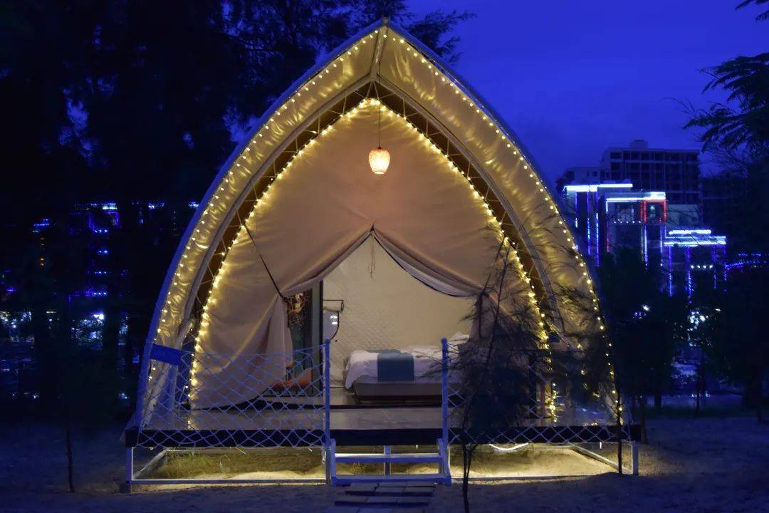 每天晚上帐篷的氛围灯也会打开, 营造不一样的视觉享受