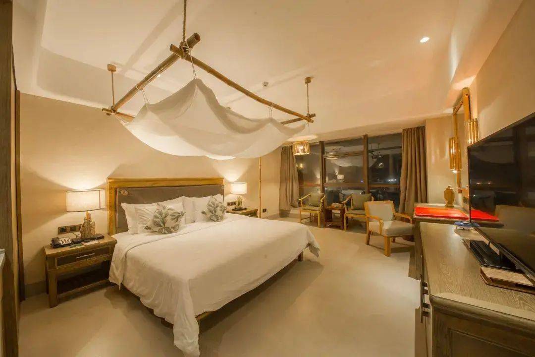 酒店客房通透又不失私密性,并配有听海落地窗。