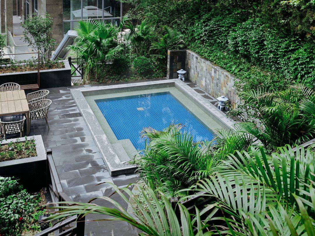 酒店拥有140㎡星空泳池和90㎡儿童泳池