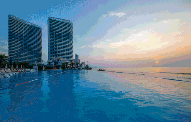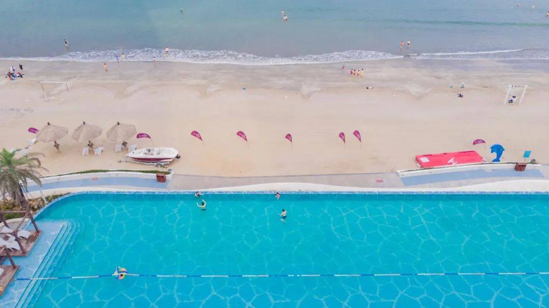 无边际泳池配沙滩每一眼都是海天泳池连成一线的大片躺在泳池边的沙滩上,像是躺进了海里随时想游就游注:海泉冬季开放