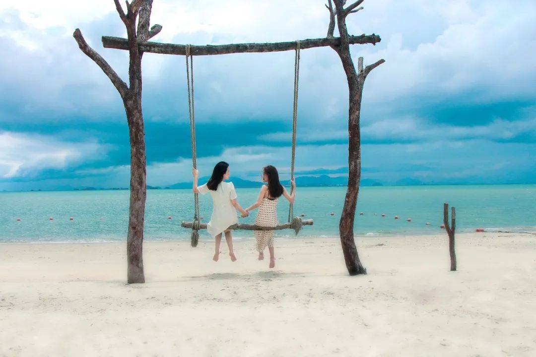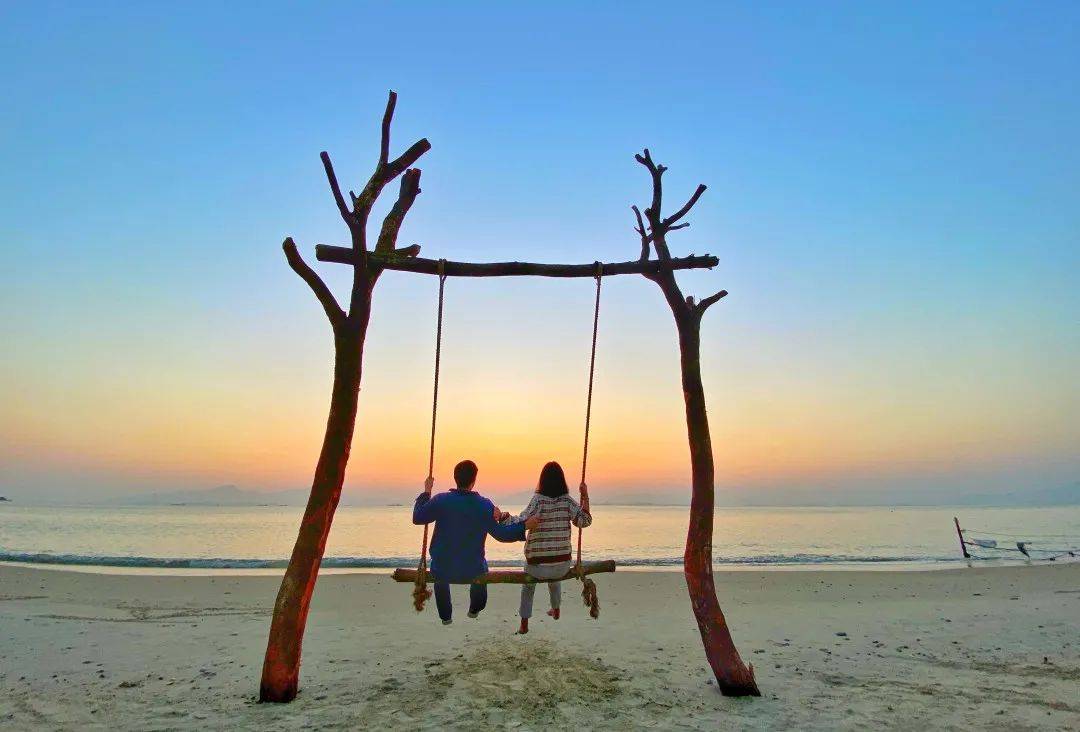 迎面大海,与海毗邻。无边际海阔的秋千荡漾与海融为一体。