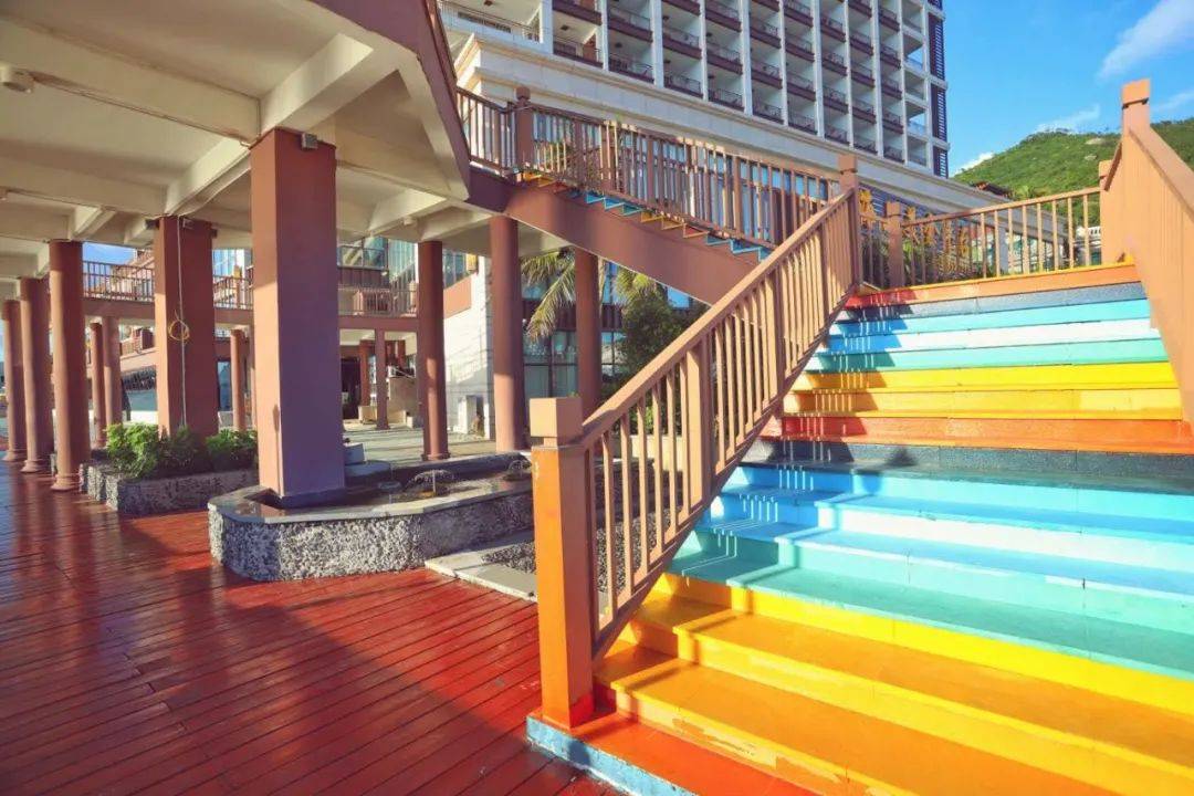 七彩斑斓的颜色,一片片欢声悦动的嘻哈声,在海边回荡着。风和日丽的阳光照耀下,每一行阶梯都在闪闪发出它的光芒。快来打卡这座彩虹梯吧!
