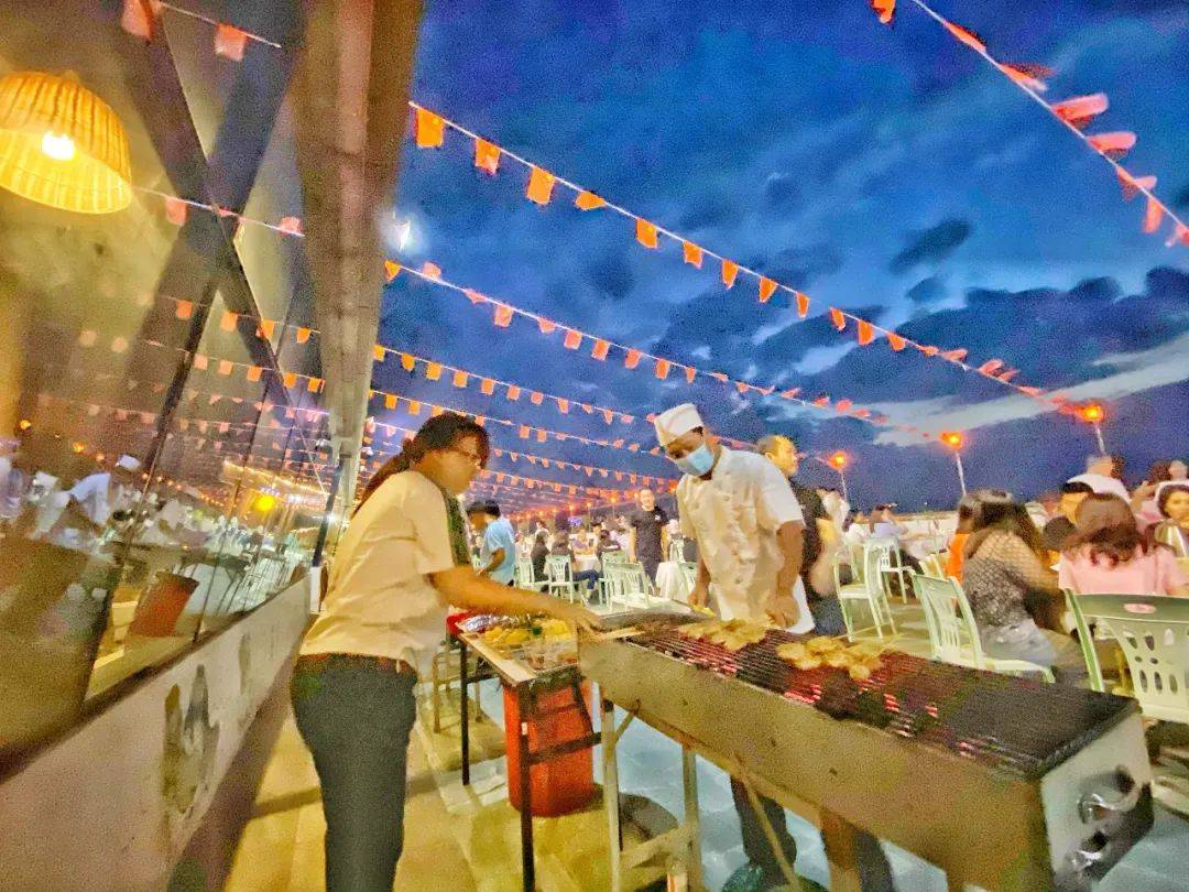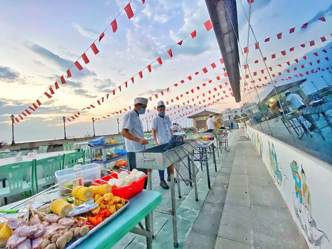美味“烧”不尽,佳肴“烤”不完。凉风习习,夕阳下海面波光粼粼,风景与时光分外美好。