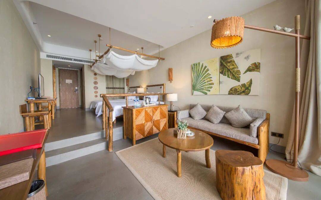 酒店拥有268间怀旧复古风格的亲海客房、海景套房,凹凸斑驳的艺术墙面,独具匠心的室内装潢,远眺葱郁群山,近瞰码头、快艇、渔船、沙滩。