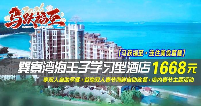 【马跃福至·连住美食套餐】1668元抢巽寮湾海王子学习型酒店-豪华亲海房1间2晚,享双人自助早餐+首晚双人春节海鲜自助晚餐+店内春节主题活动,免费体验无边际泳池、恒温泳池、中药泡池、健身房~