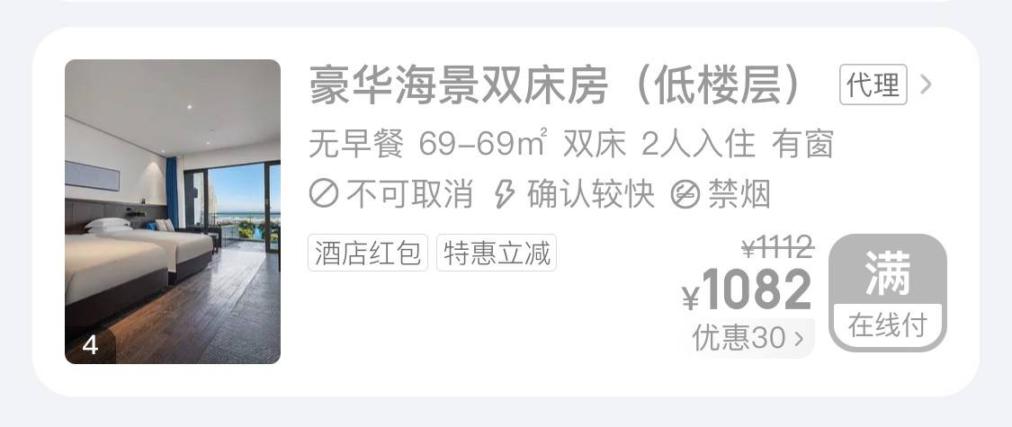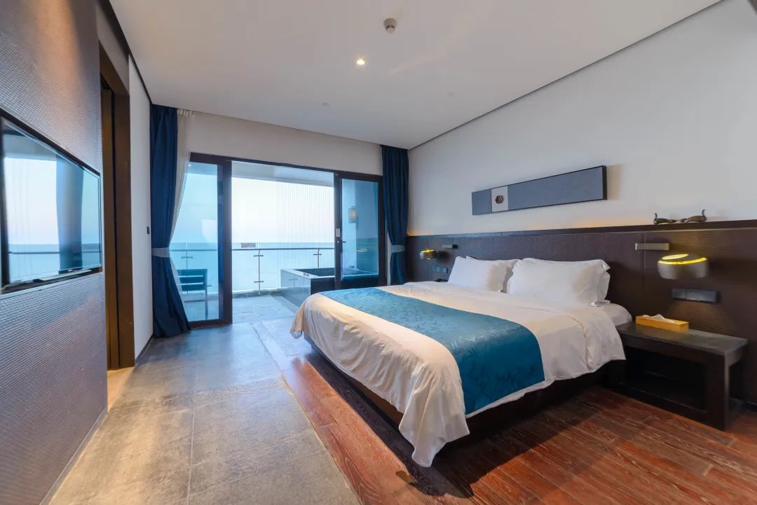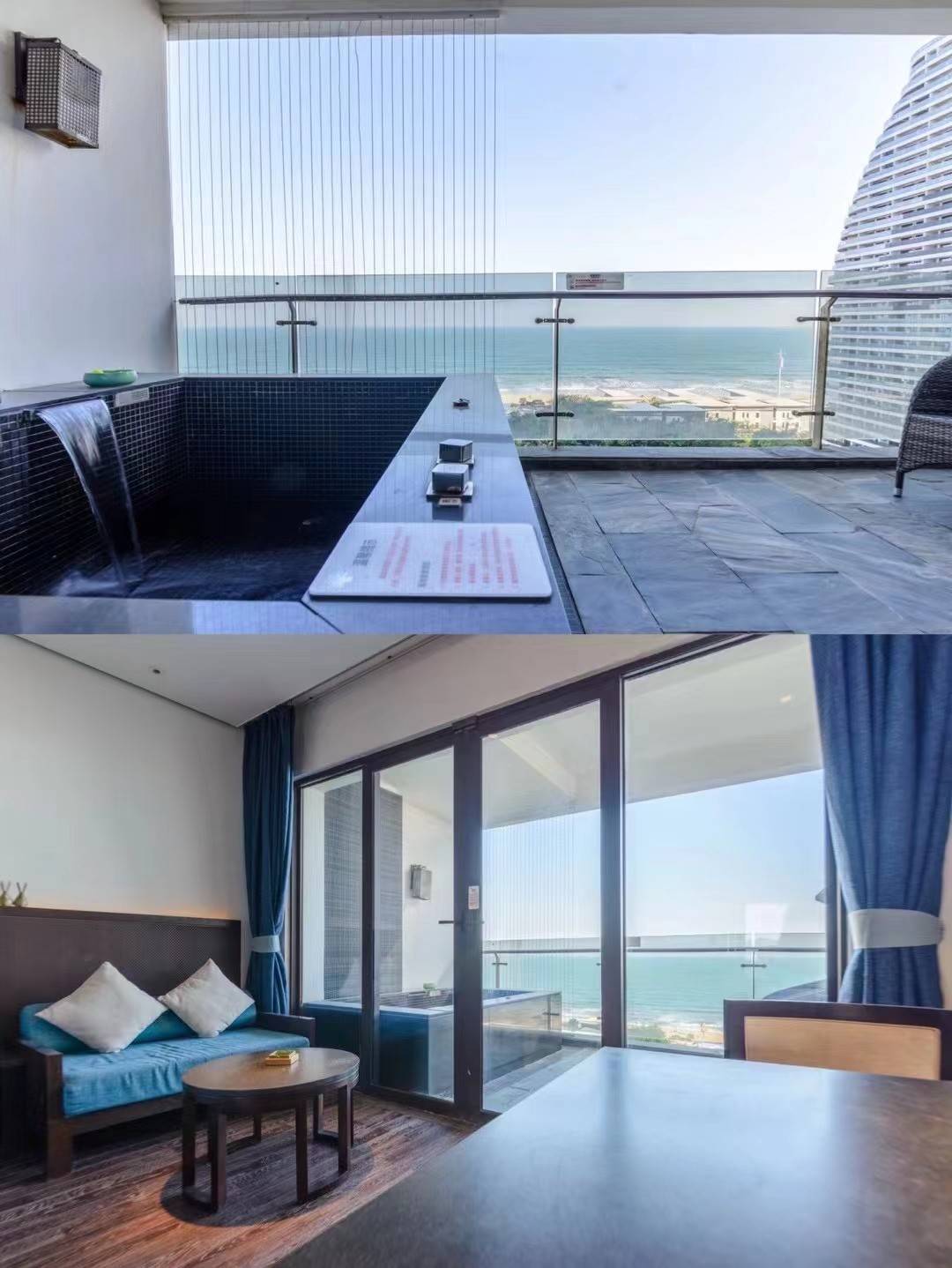 【到手2间!无敌正海景泡池房】周末不加收~有海有温泉!楼下就是沙滩!60㎡超大空间正海景大阳台SPA泡池看日出!398元惠州双月湾檀悦海诗温泉酒店2号楼王正海景房2间+阳台海泉SPA泡池送1池水+铂金