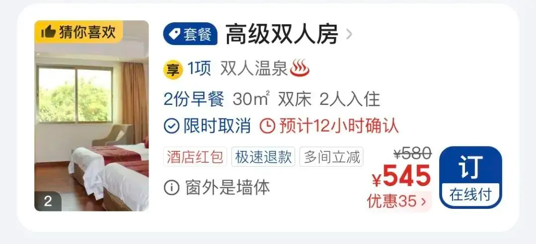 升级私家温泉房大或双床,赠送一池私家泡池水,需加收:120元