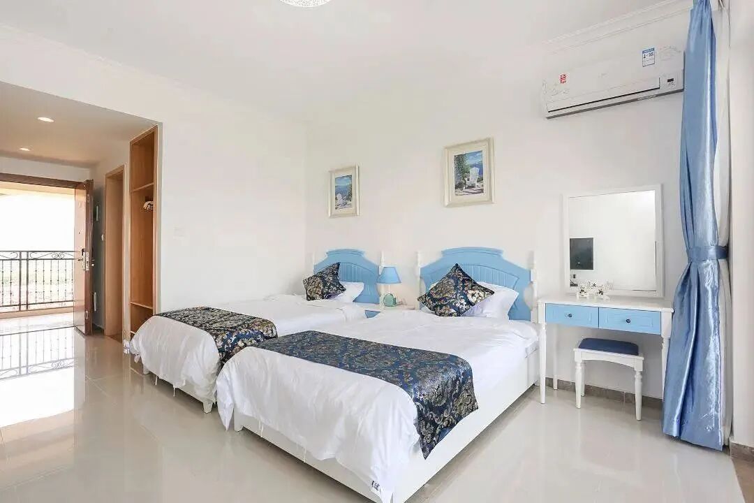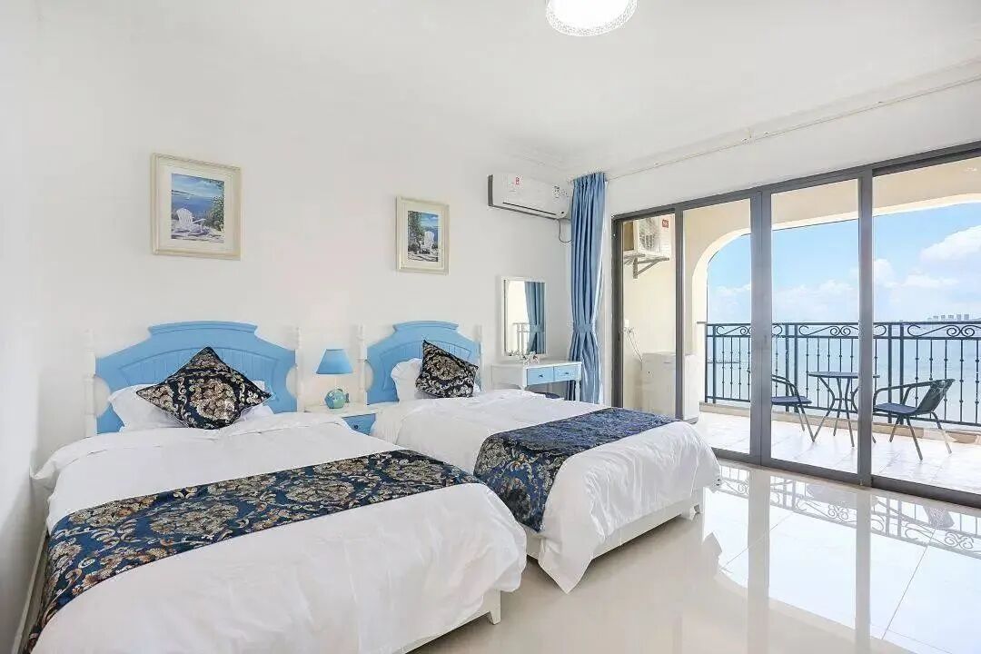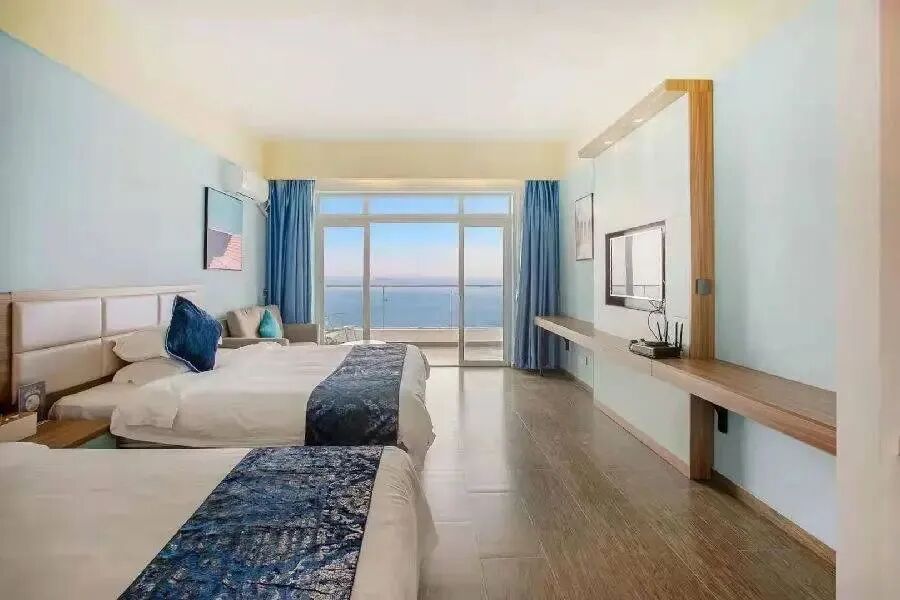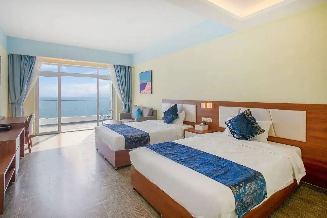 2、房型介绍:双床房1.35米*2 或大床房1.8米,房间均带有观景大阳台,正海景朝向,配有一次性洗漱用品