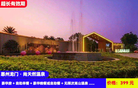 惠州温泉 龙门县 享¥ 5 推¥25 【寻味龙门套餐】海鲜自助晚餐!¥719住惠州龙门富力希尔顿度假酒店-豪华园景房!含2大1小自助早餐+海鲜自助晚餐+河畔皮划艇体验1次30分钟+射箭赠送20支箭+畅玩1000㎡酒店户外泳池等~ 限时抢 立减元 立减元 立减元 立减元 立减元 立减元 立减元 立减元 立减元 立减元 立减元 ¥719 ¥719 -- --天--小时--分钟--秒 龙门县 享¥ 5 推¥25 【秋冬季·火锅美食套票】¥798抢龙门地派温泉度假酒店-桂峰森景双床房,享2大1小自助早餐+火锅套餐+无限次温泉+无边际泳池+网红打卡点~ 限时抢 立减元 立减元 立减元 立减元 立减元 立减元 立减元 立减元 立减元 立减元 立减元 ¥798 ¥798 -- --天--小时--分钟--秒 龙门县 享¥ 5 推¥40 【惠州龙门·五星云顶温泉】畅玩五彩缤纷水乐园,浸泡国家级五星级温泉!¥820抢住云顶温泉2期威士忌酒店畔山泡池双床房+含2大1小自助早餐+无限次温泉爽泡+干湿蒸+大芹温泉乐园+迷你吧!一键满足所有出游 限时抢 立减元 立减元 立减元 立减元 立减元 立减元 立减元 立减元 立减元 立减元 立减元 ¥820 ¥820 -- --天--小时--分钟--秒 惠东县 享¥ 5 推¥20 【惠州·醉美候鸟度假区】独一无二双池帝王享受!单间价享受私家温泉池+网红泳池大别墅!赠送单车骑行和管家接送!住进千亩候鸟度假区,巴厘岛同款照片随手拍~388元抢候鸟2房别墅+网红私家泳池+SPA温泉泡 限时抢 立减元 立减元 立减元 立减元 立减元 立减元 立减元 立减元 立减元 立减元 立减元 ¥388 ¥388 -- --天--小时--分钟--秒 龙门县 享¥ 5 推¥20 【惠州南昆山X富力养生谷庄园】周末寒假通用!50多个日式北海道同款浪漫温泉暖泡~SPA汗蒸,特色冷泡池!住进大氧吧山水环绕度假胜地~458养生谷庄园雅致房+次日早餐+无限次庄园温泉+造浪池&小泳池+养 限时抢 立减元 立减元 立减元 立减元 立减元 立减元 立减元 立减元 立减元 立减元 立减元 ¥458 ¥458 -- --天--小时--分钟--秒 惠东县 享¥ 5 推¥10 【惠州·安墩温泉小镇】全周日-周五不加收!专家竖大拇指的98°C 硫磺温泉,纯天然泉眼直供!私家温泉无限池水爽泡!238元抢东方园林温泉酒店豪华双床房+阳台私家温泉池+无限池温泉水+打卡安墩温泉小镇+ 限时抢 立减元 立减元 立减元 立减元 立减元 立减元 立减元 立减元 立减元 立减元 立减元 ¥238 ¥238 -- --天--小时--分钟--秒 惠东县 享¥ 5 推¥10 【惠州·安墩温泉小镇X网红华清温泉酒店】周日-周五不加收!专家竖大拇指的98°C 硫磺温泉,纯天然泉眼直供!私家温泉无限池水爽泡!248元抢酒店特色木屋大床房(1.8米大床)+私家温泉池无限池水+打卡 限时抢 立减元 立减元 立减元 立减元 立减元 立减元 立减元 立减元 立减元 立减元 立减元 ¥248 ¥248 -- --天--小时--分钟--秒 龙门县 享¥ 5 推¥20 【惠州龙门·4A尚天然温泉】到手2间房!60+高山天然中药温泉无限任泡!非遗文化表演天天上演!399元抢尚天然童话客栈豪华房2间+自助早餐+无限次高山温泉+SPA干蒸+亲亲鱼疗+特色非遗表演+萌宠乐园 限时抢 立减元 立减元 立减元 立减元 立减元 立减元 立减元 立减元 立减元 立减元 立减元 ¥399 ¥399 -- --天--小时--分钟--秒 龙门县 享¥ 5 推¥25 【惠州龙门·4A尚天然温泉】官方认证!世界最大围屋酒店,赠送价值188元豪华晚餐!60+高山天然中药温泉无限任泡!非遗文化表演天天上演!399元抢尚天然围屋酒店豪华房+自助早餐+豪华晚餐或自助餐+无限 限时抢 立减元 立减元 立减元 立减元 立减元 立减元 立减元 立减元 立减元 立减元 立减元 ¥399 ¥399 -- --天--小时--分钟--秒 博罗县 享¥ 5 推¥30 【惠州罗浮山X凯宾利花园酒店】赠送价值188元烧烤套餐!高颜值网红酒店~浪漫无边际空中恒温泳池畅游!住进大氧吧叹阳台房间~399元抢酒店舒适景观大床或双床房+次日客家早餐+豪华烧烤套餐+无限次空中恒温 限时抢 立减元 立减元 立减元 立减元 立减元 立减元 立减元 立减元 立减元 立减元 立减元 ¥399 ¥399 -- --天--小时--分钟--秒 正在加载
